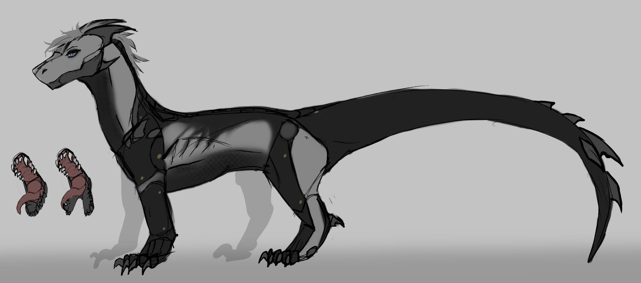 Cyborg (shapeshifter - demi-human, dragon, anthropomorph)Mercenary, ex-military warrior. This cyborg noodle has a high morale standards. Unfortunately the past events trauma leads him to dangerous...instability episodes. But hey, he tries really hard to settle it! Really.. To protect himself he convinced himself anything that was done is "justice", anything that considered as "murder" too, however this was proved to remain ineffective later.