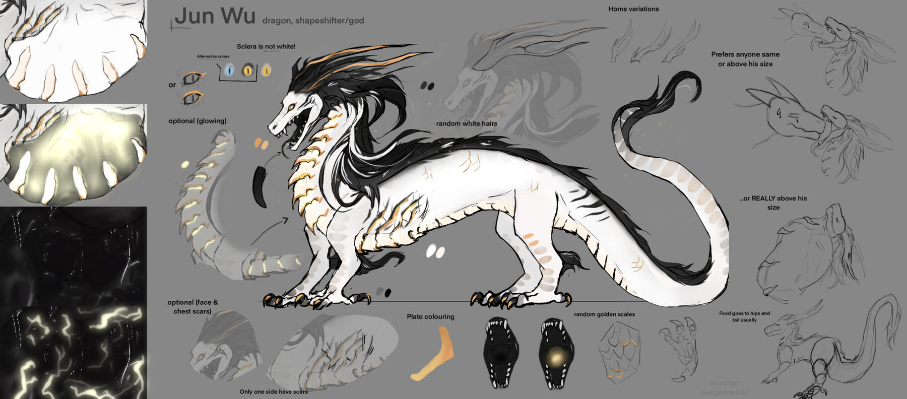 God (shapeshifter - demi-human, eastern dragon, anthropomorphic dragon)Wu is the Heavenly Emperor, one of the most powerful and elder gods; endlessly wise and patient. Many followers offering him prayers, heavens’ officials works tirelessly under his command to protect mortal realm, blissfully ignorant to what lies beneath glittering surface of god in the white armor.