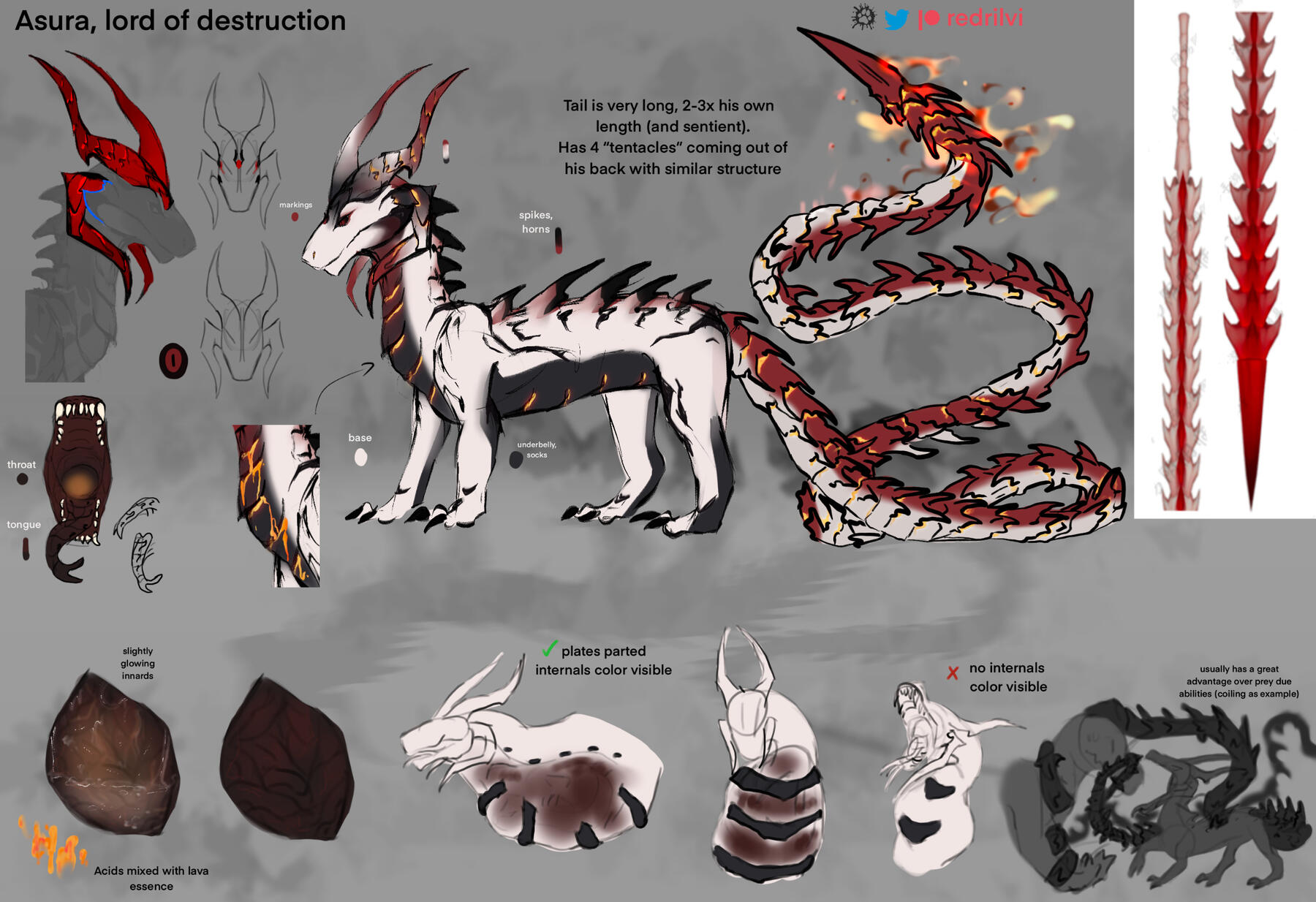 Looking for a more evident presentation? Asura have a story featuring him: Abyss Purge* Belly’s destructive capacity (what it can digest):yes* Digestion speed: from several minutes to a week. His acid potency is impressive, almost horribly so, his belly doesn't waste time. Faster digestion means more meat to consume - simply as that.* Volume (what prey can it hold): ??? [cat is researching this topic]* Belly efficiency (how the nutrients are used): during the rampage most nutrients are converted into energy to destroy, the other significant part is used to empower his manhood.* Special quirks: heated enough, his acids akin to a bubbling lava than a liquid. It will melt anything and anyone, even the most tough scales and break through any magic barriers. Alongside with deadly potency his guts posses one more trait - soul shatter, able to melt even soul core itself, sweet release from never ending circle of reformation.Asura prefers to hunt down any creature he find satisfying enough (monsters, dragons, more dragons...), a hunger not easy to fulfill. He enjoys challenges and gladly will fight anyone fitting or anyone foolish. Feeding on living entities isn't only a source of sating the hunger, but keeping his furious spiritual powers dormant.