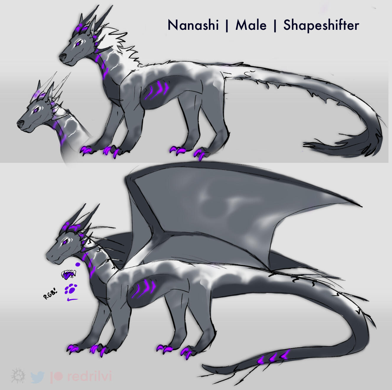 All characters can shift between "feral" and anthropomorphic/human forms (to preserve source story). I enjoy keeping them in dedicated settings. I really don’t like people treating them as “just feral dragons”, thank you ♡