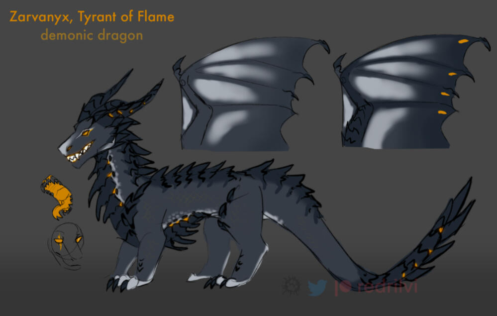 Demonic being (shapeshifter - demi-human, dragon, anthropomorph)A demonic dragon living in an another realm. He is a definition of "classic evil character", fallen into demonhood he has chosen quite a harsh way to enrich his powers through a life force and over a few centuries of schemes and working his claws (or jaws) gained a sufficient amount of followers (or better say "enslaved") to keep inside a private abodiment. Ex-inhabitant of the Abyss, an underlying of Asura.He views himself as the apex predator, both feared and revered. He speaks in grandiose terms, constantly reminding others of his ancient lineage and devastating power. He often underestimates others because of his ego. Enjoys making an entrance—blazing fire, echoing laughter, and dramatic monologues are his signature. He treats every appearance like a performance meant to inspire awe or dread. Easily provoked, especially if mocked or reminded of a past defeat. Behind the arrogance lies a sharp mind. Manipulates others with promises of power or survival, only to betray them if it suits his hunger.Maintains a polished, intimidating form with gleaming scales and infernal ornamentation. Insults about his looks or status are taken personally and are rarely forgiven.Vore-related information: